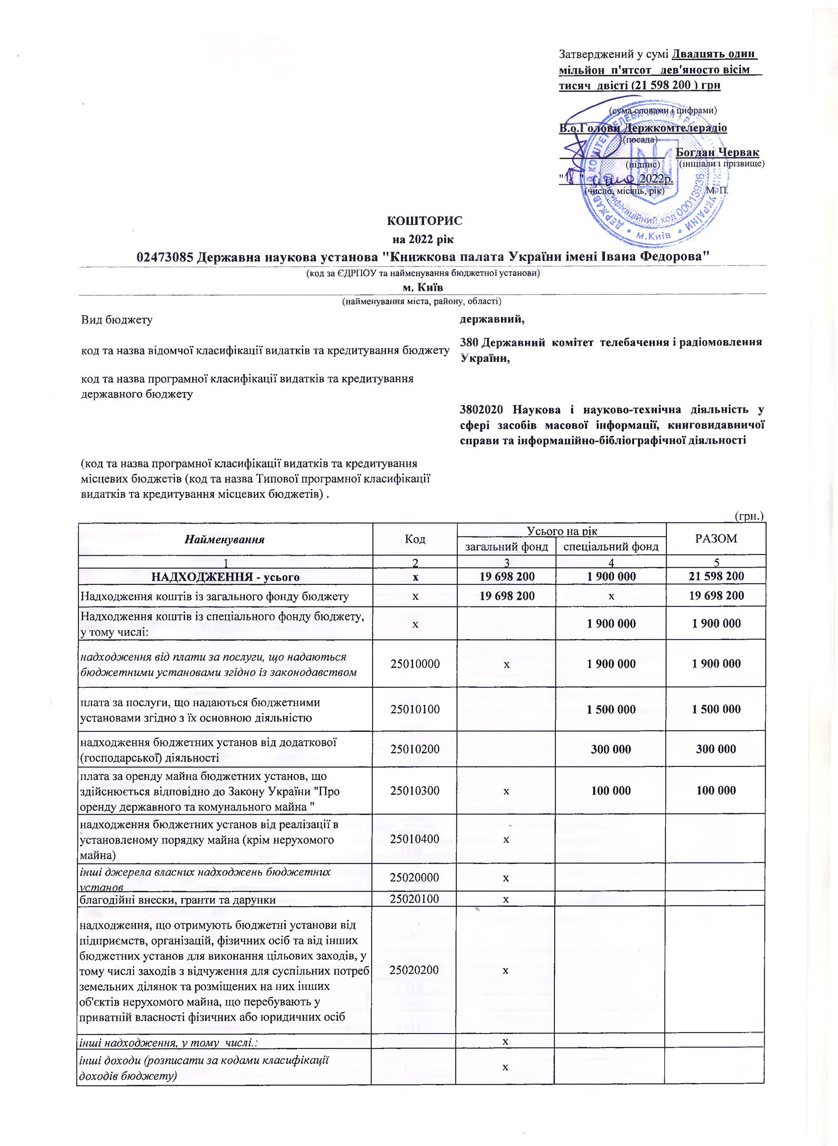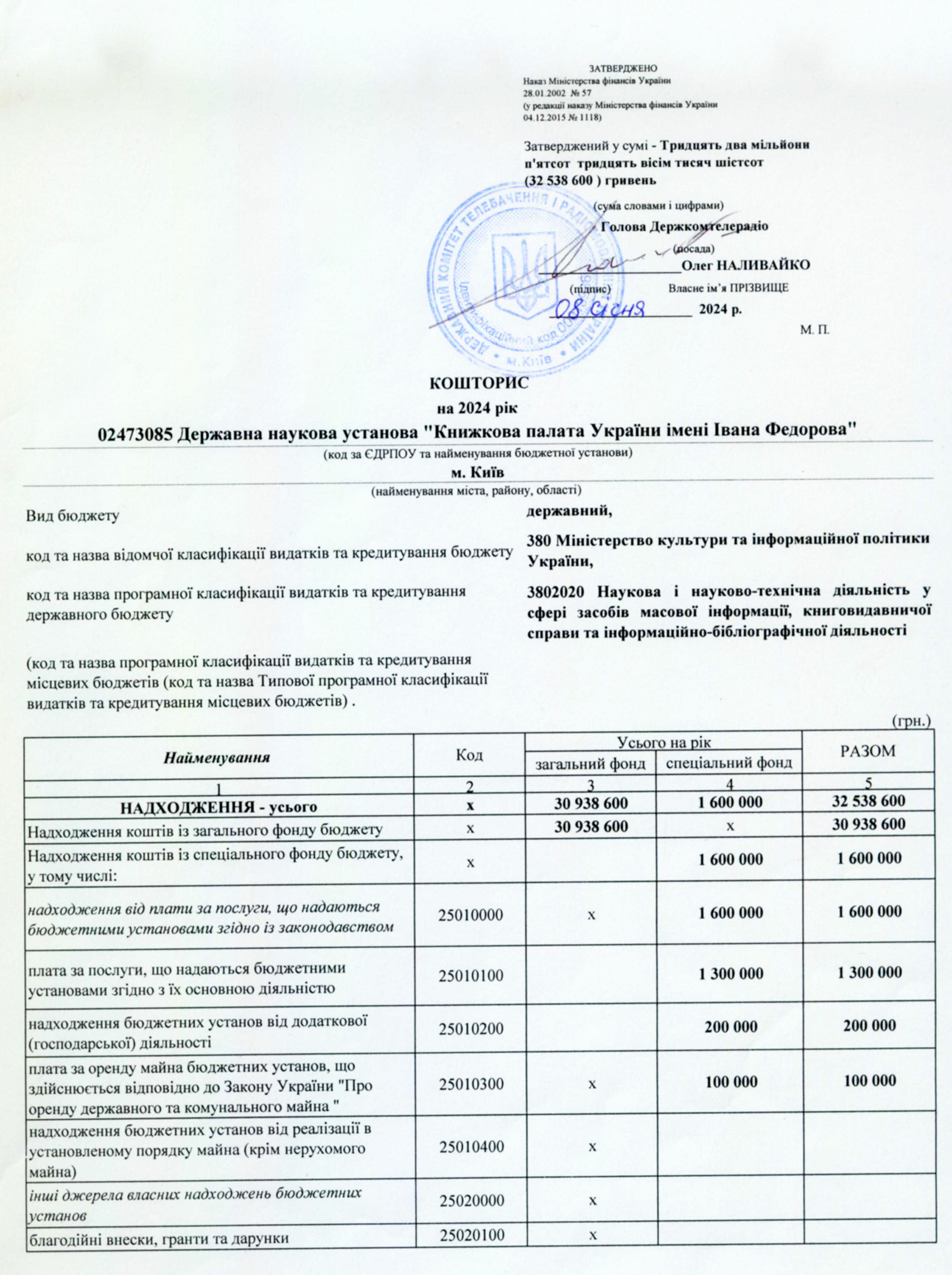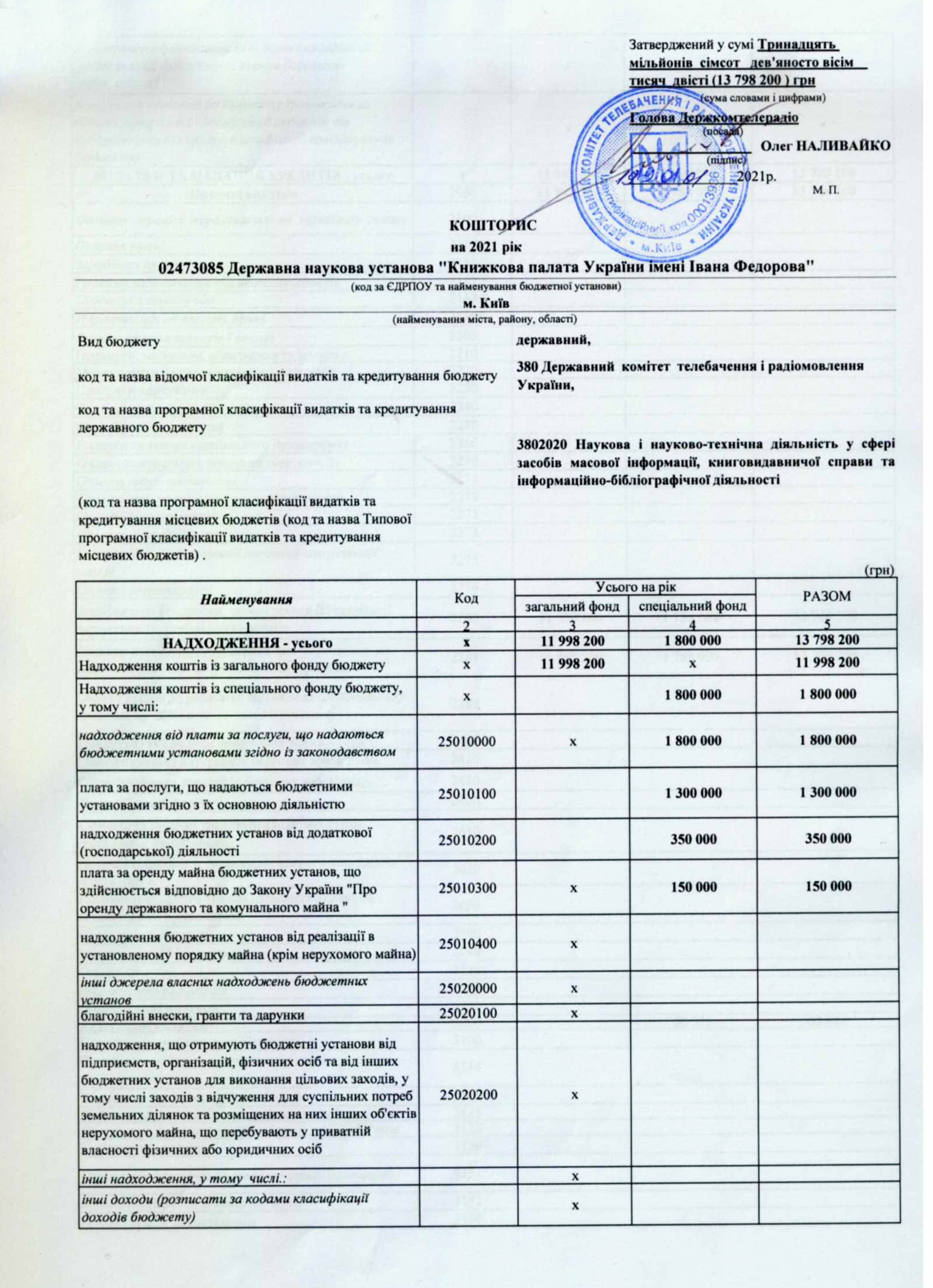 Кошторис на: