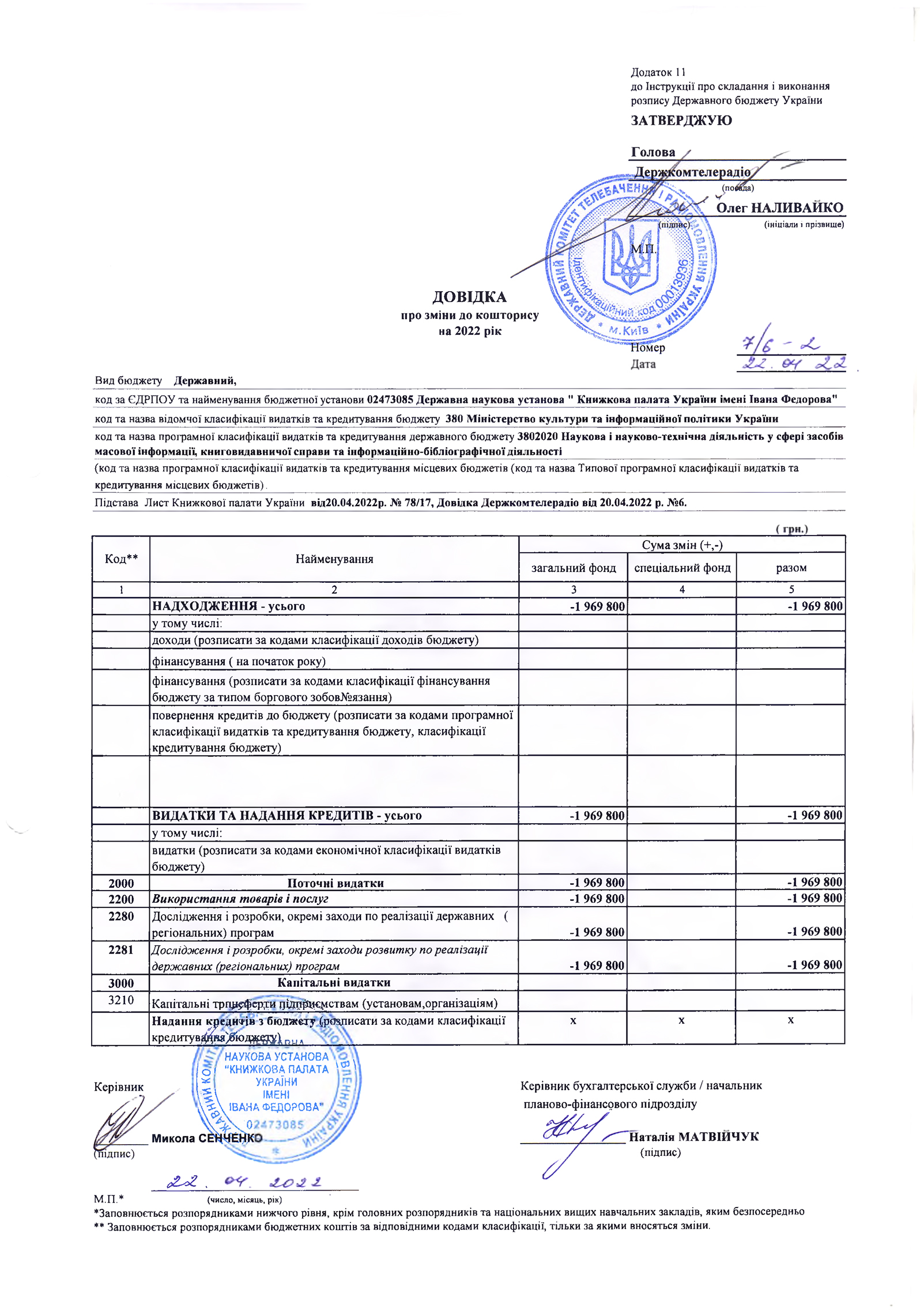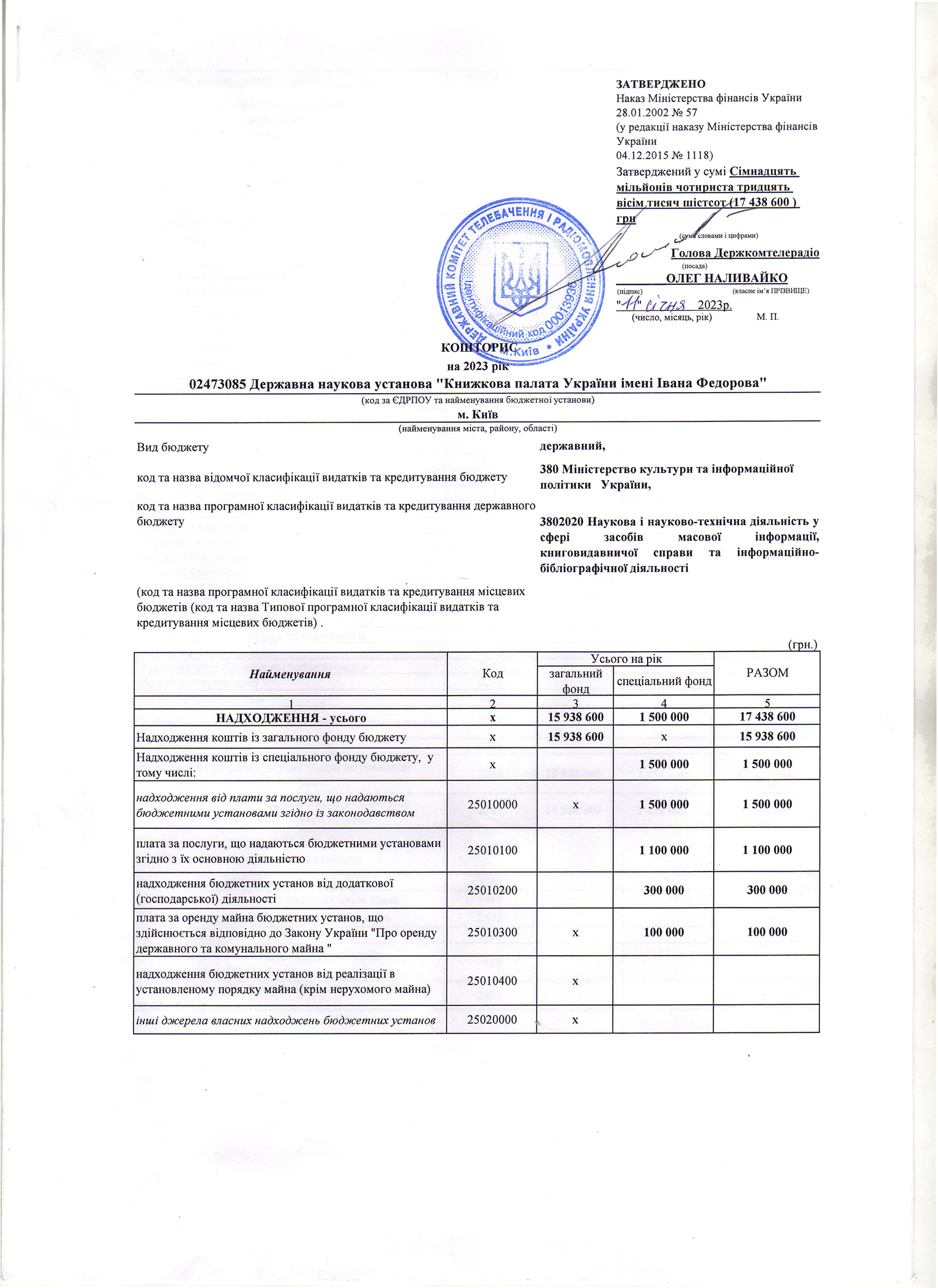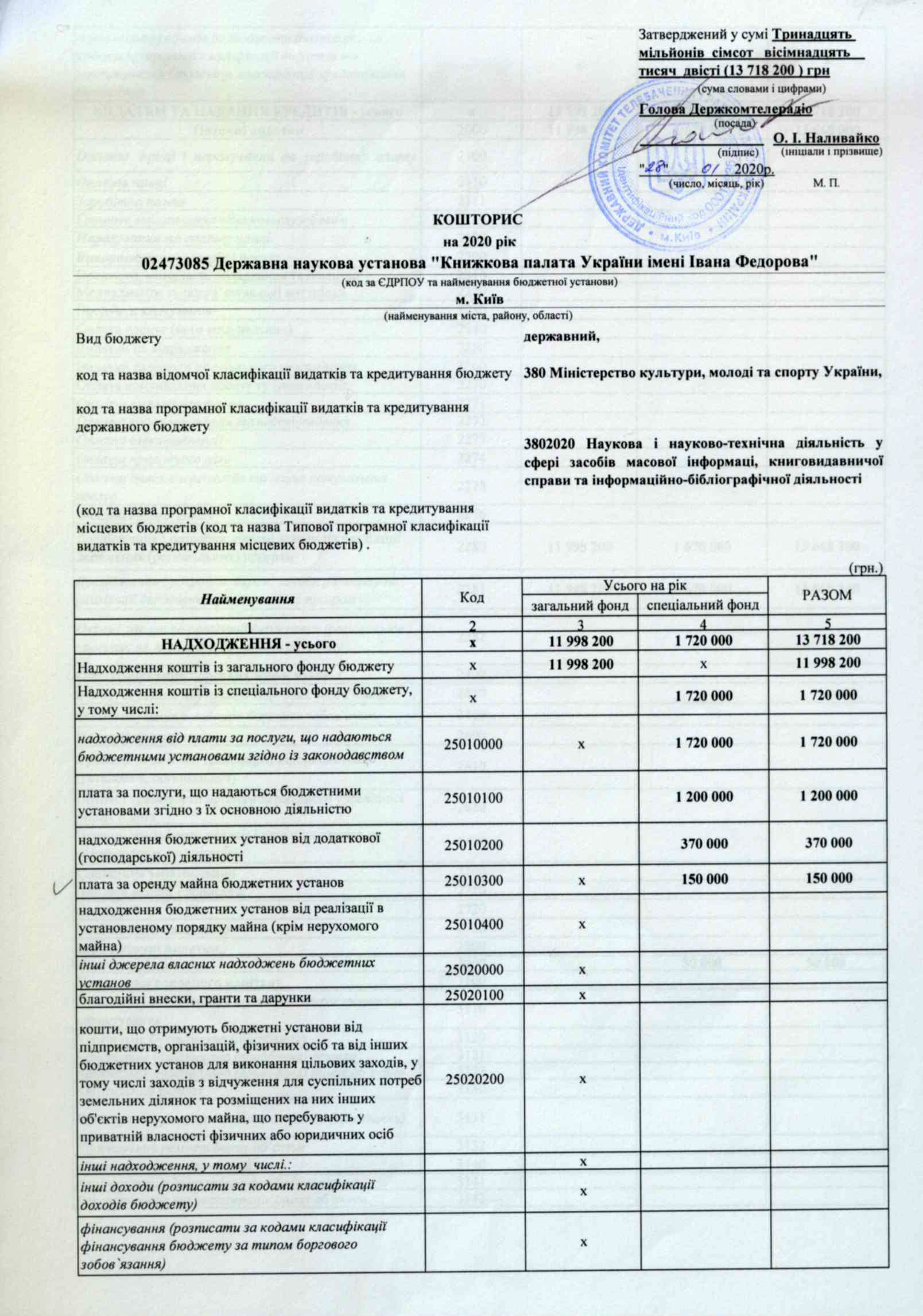 Кошторис на: