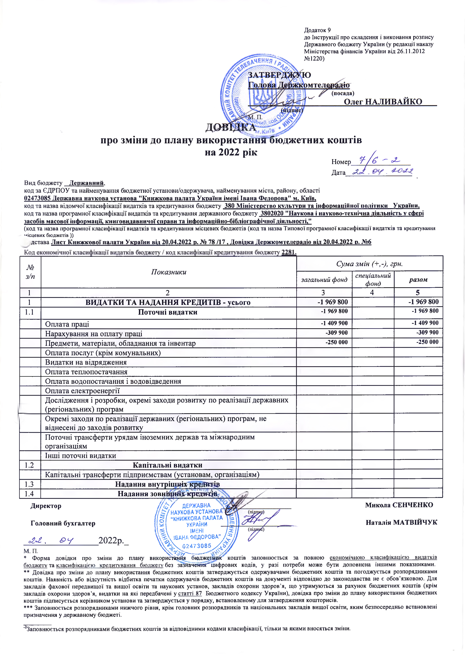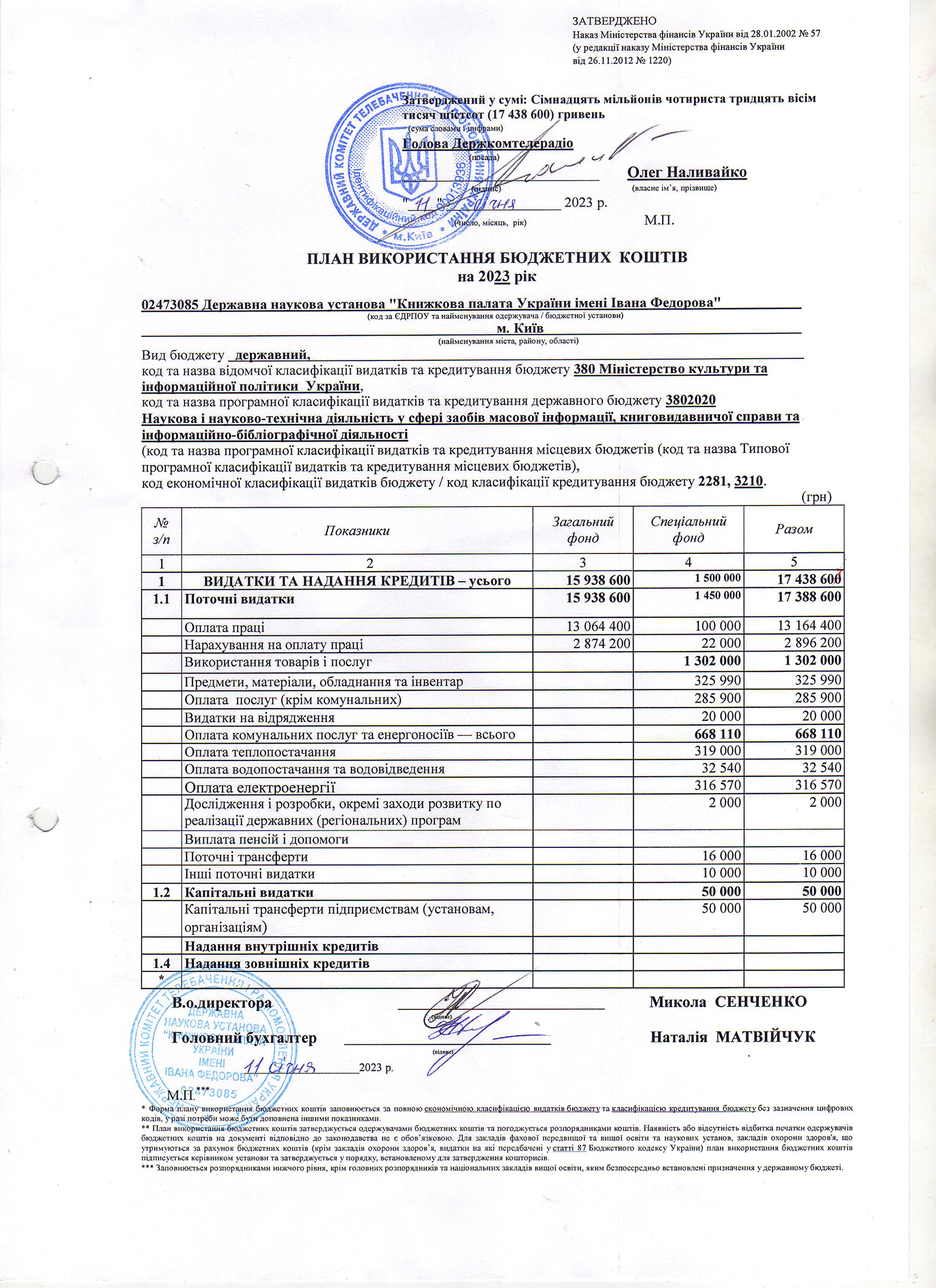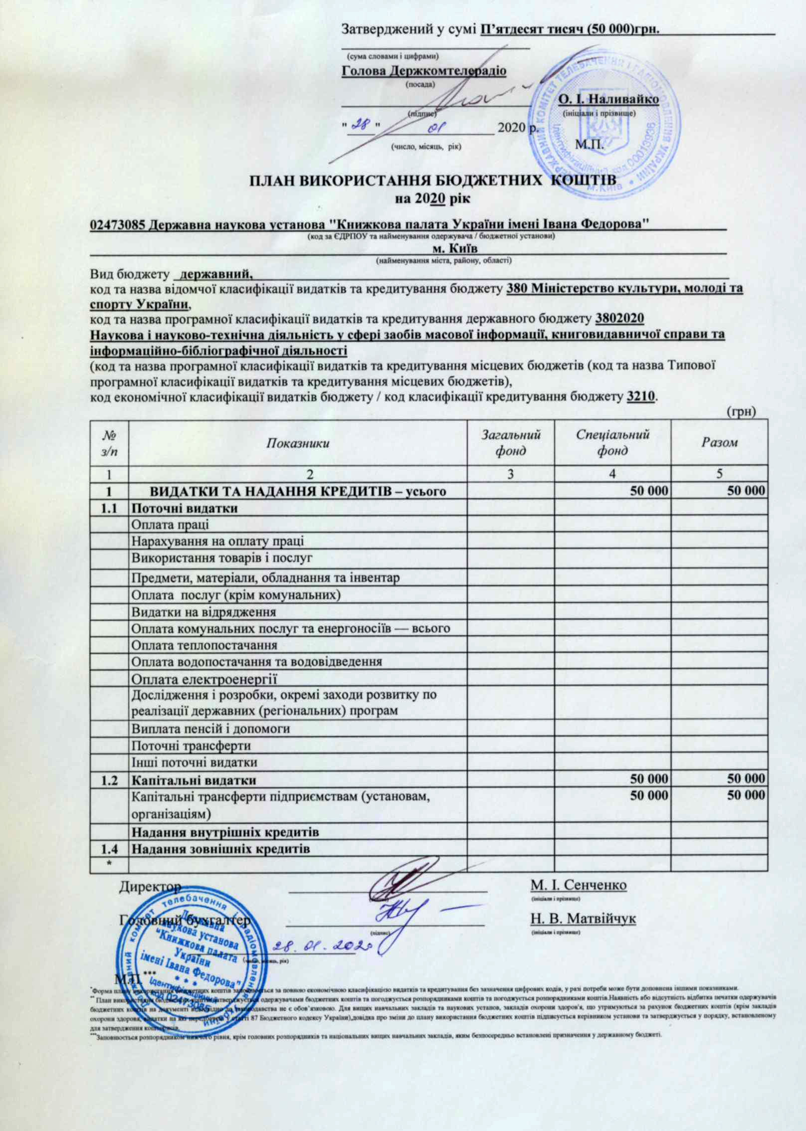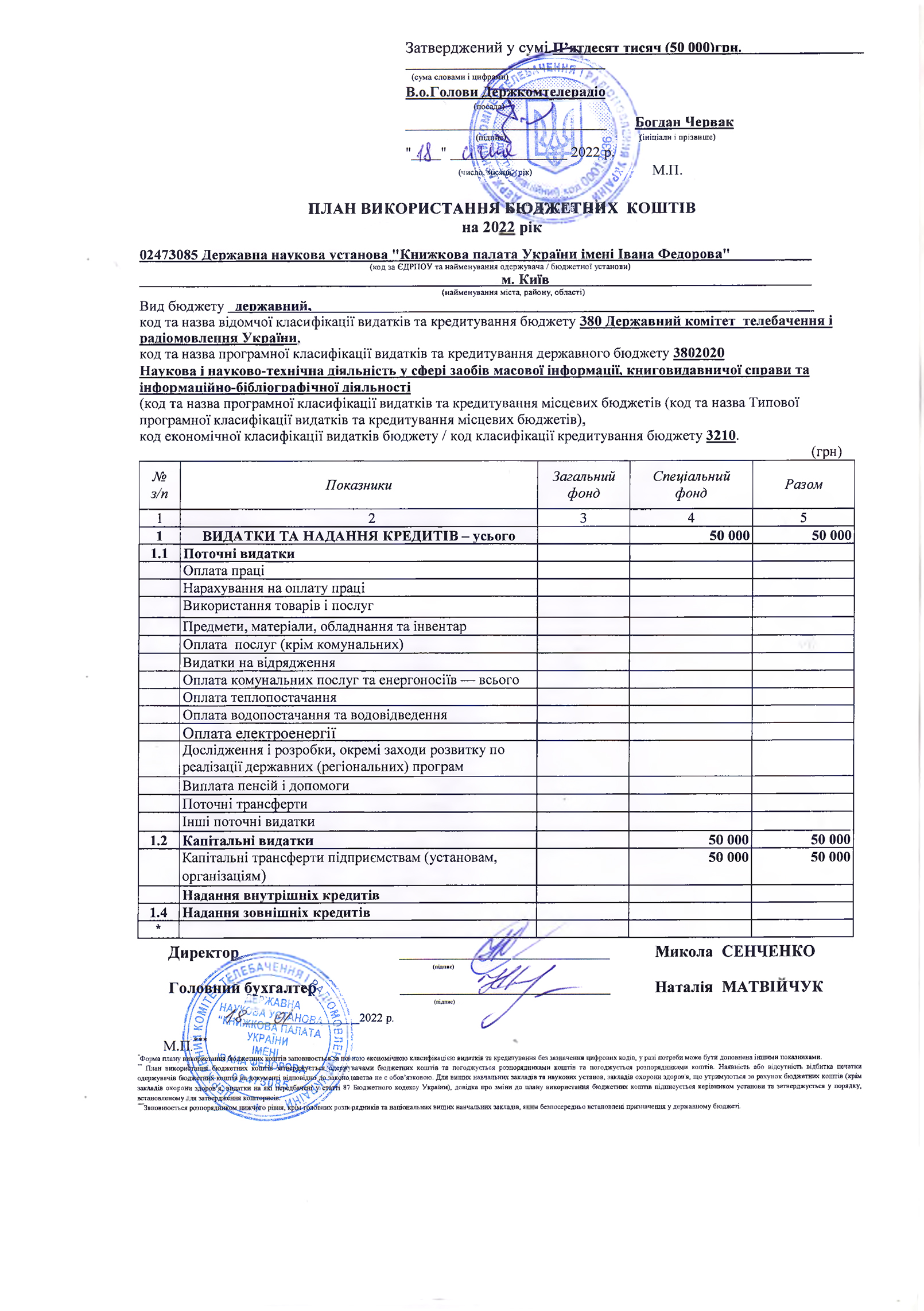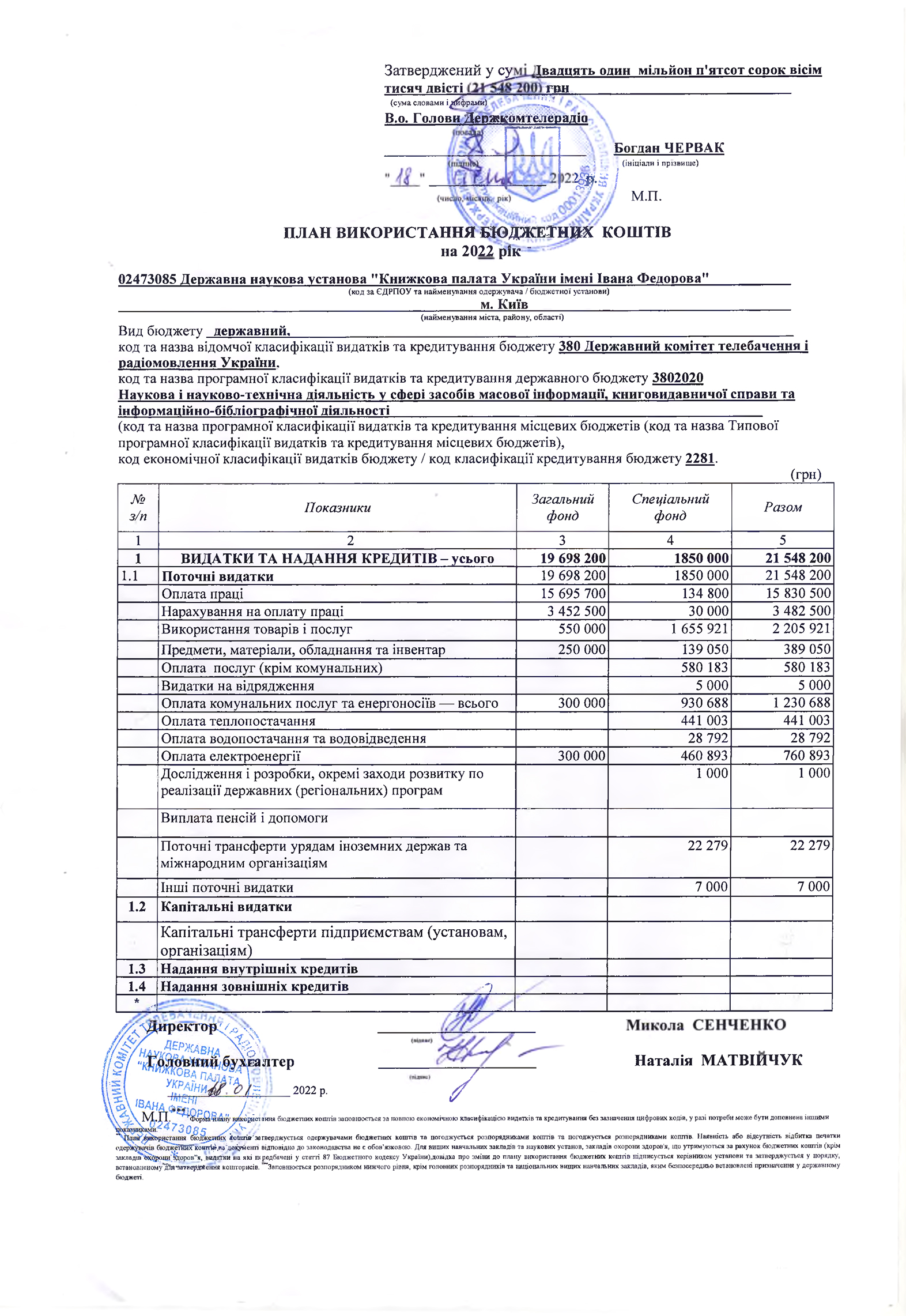 План використання бюджетних коштів на:
