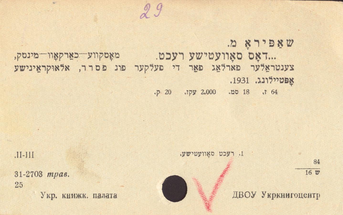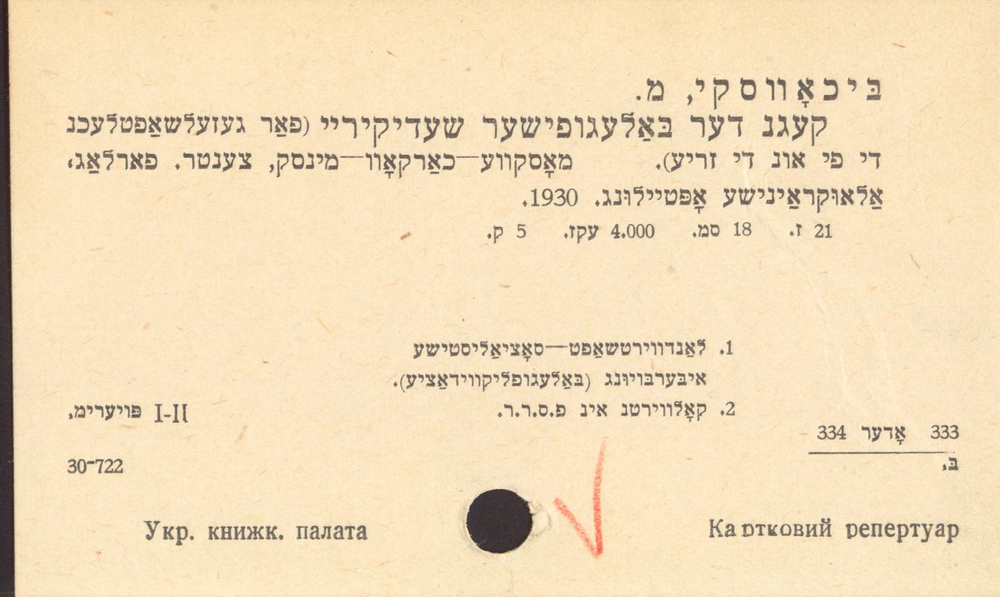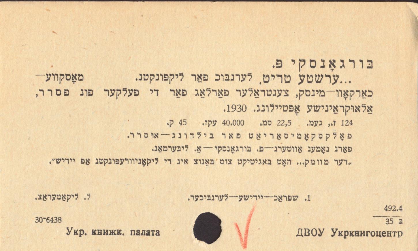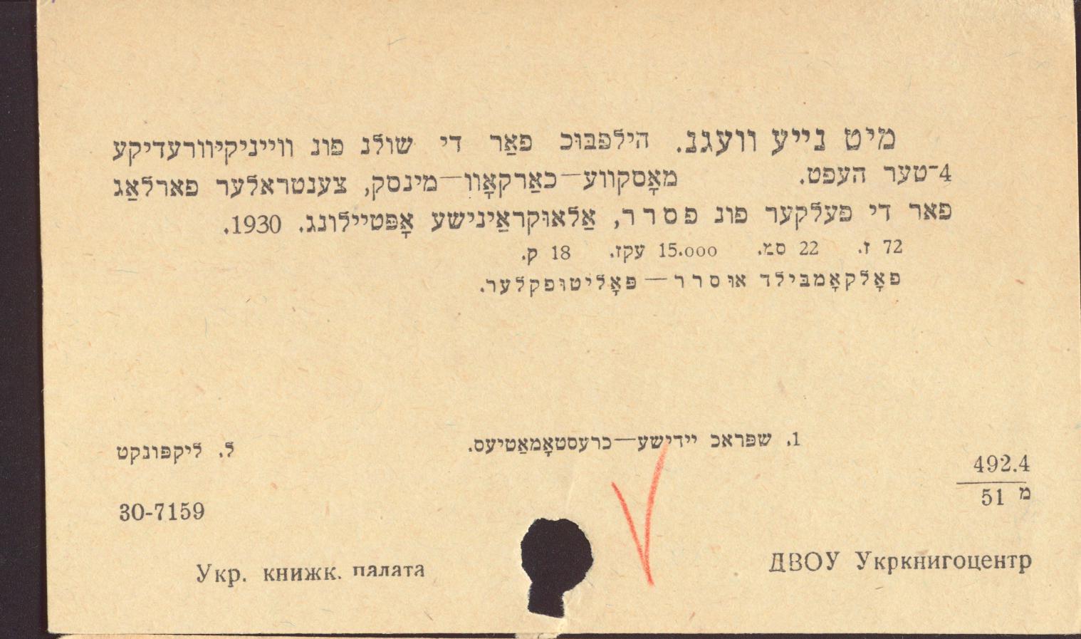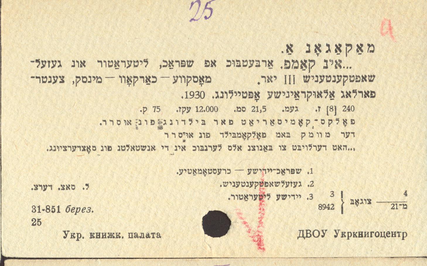 Імідж-каталог книжкових видань 1930 — 1931 рр. мовою ідиш