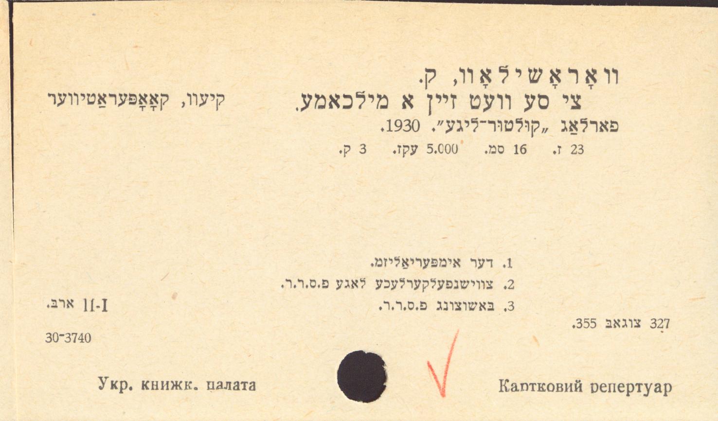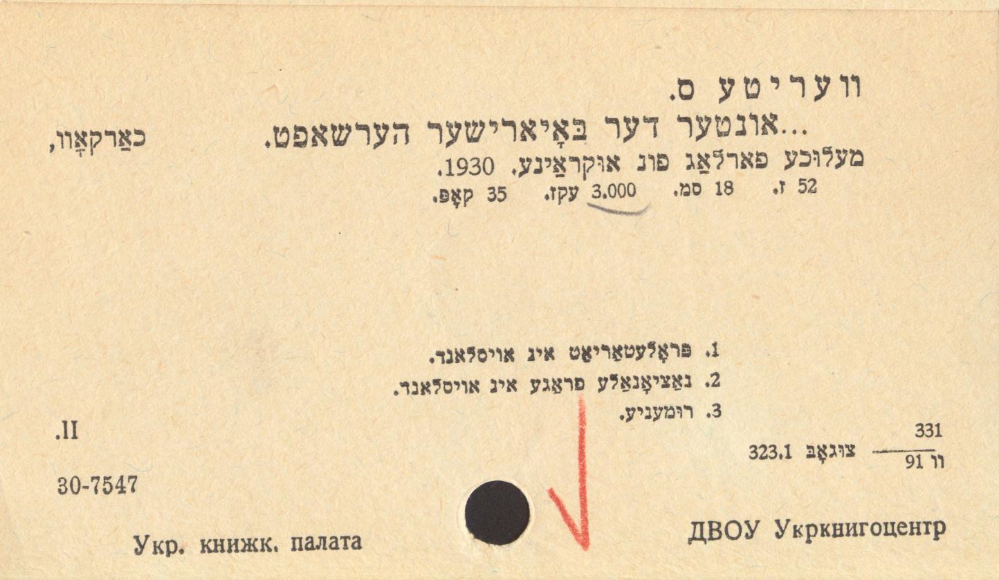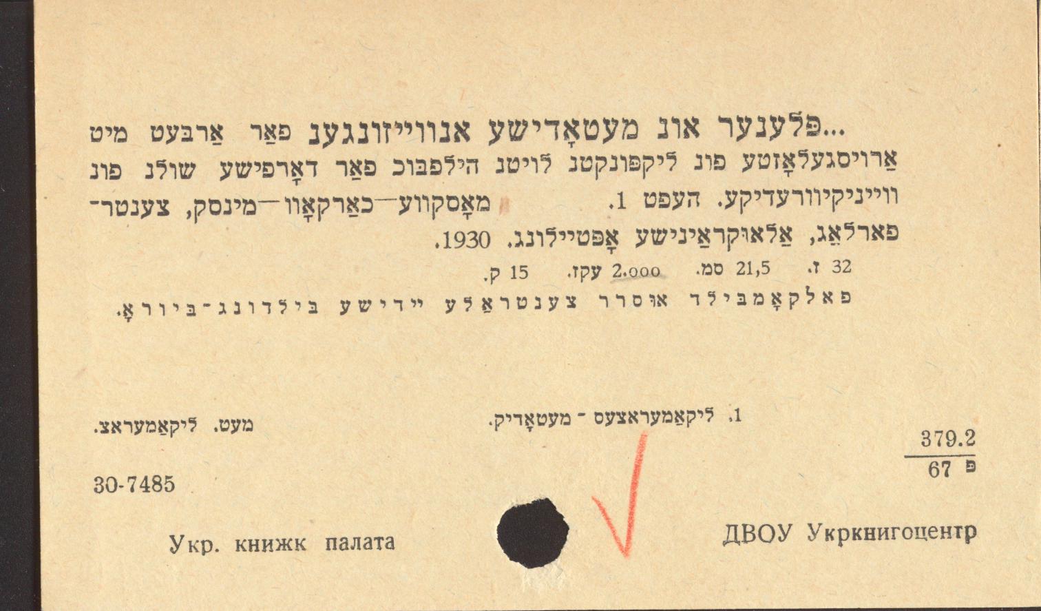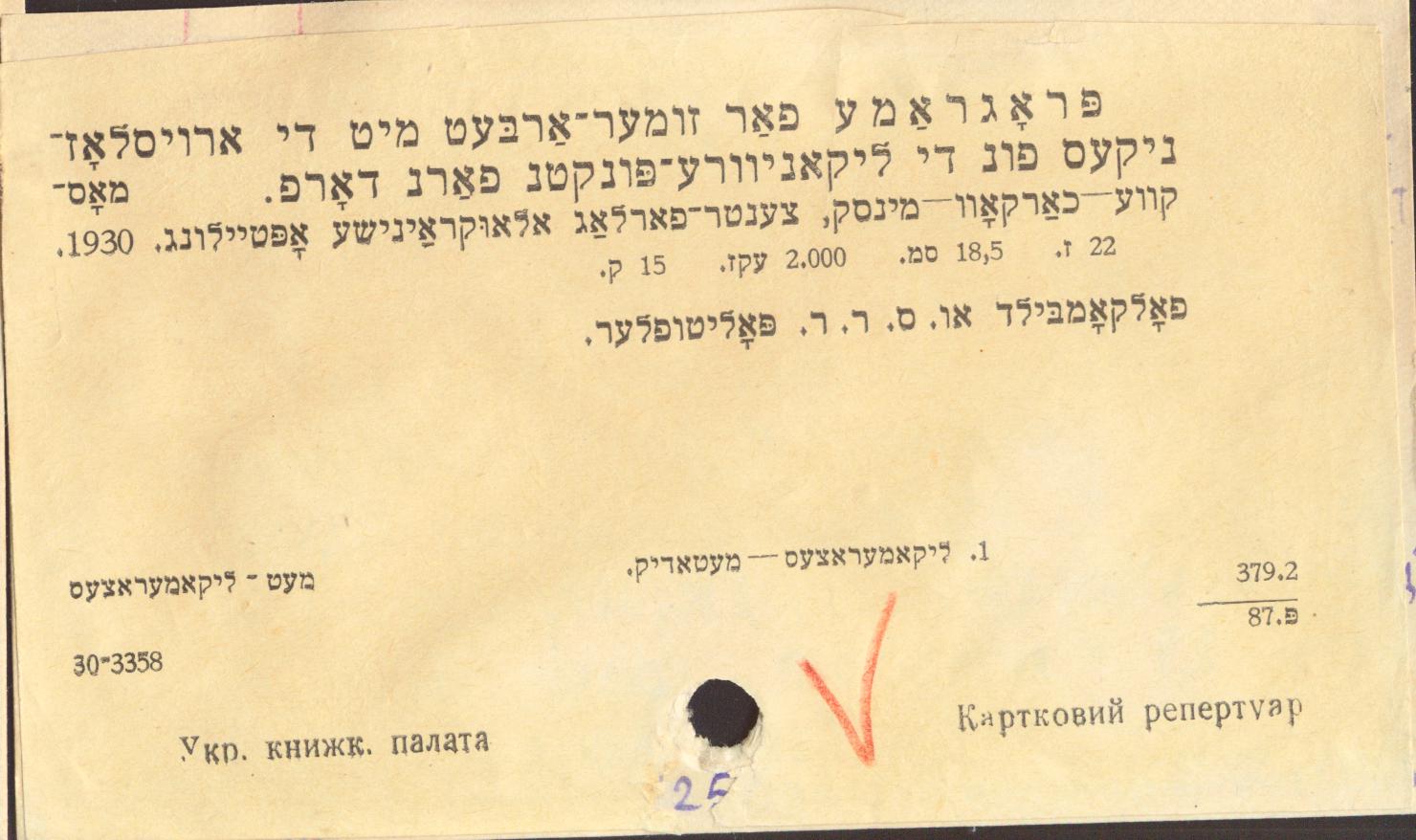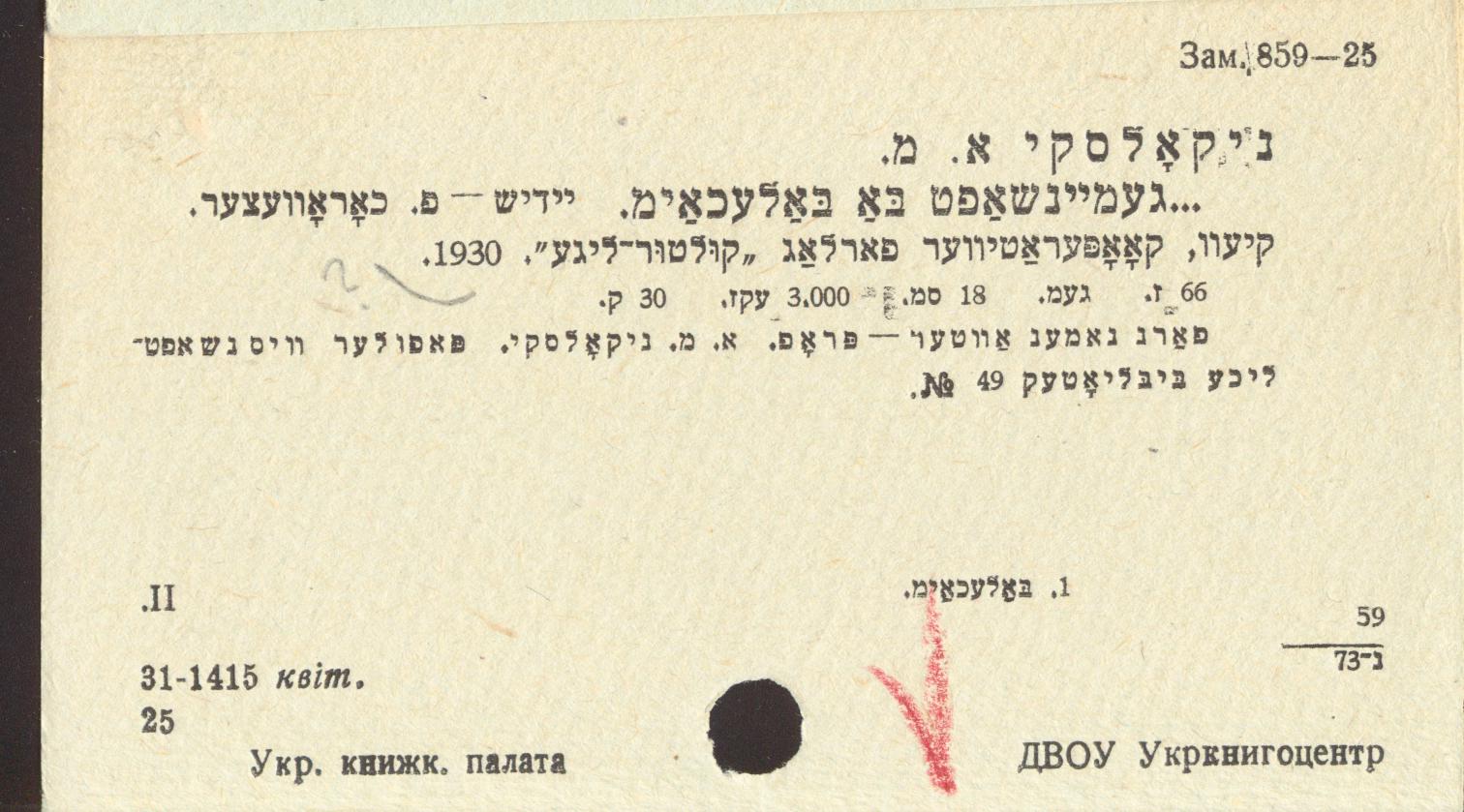 Імідж-каталог книжкових видань 1930 — 1931 рр. мовою ідиш