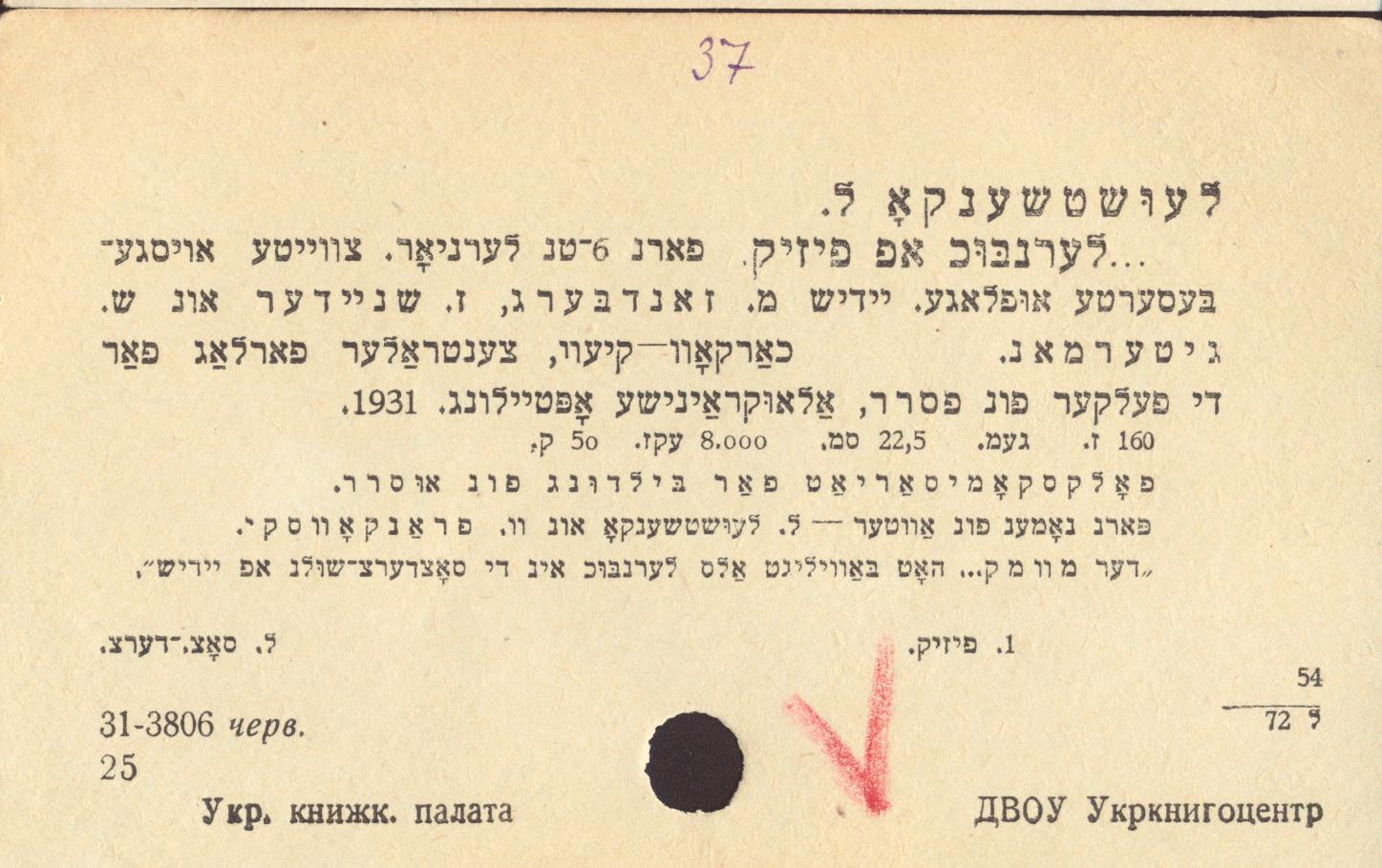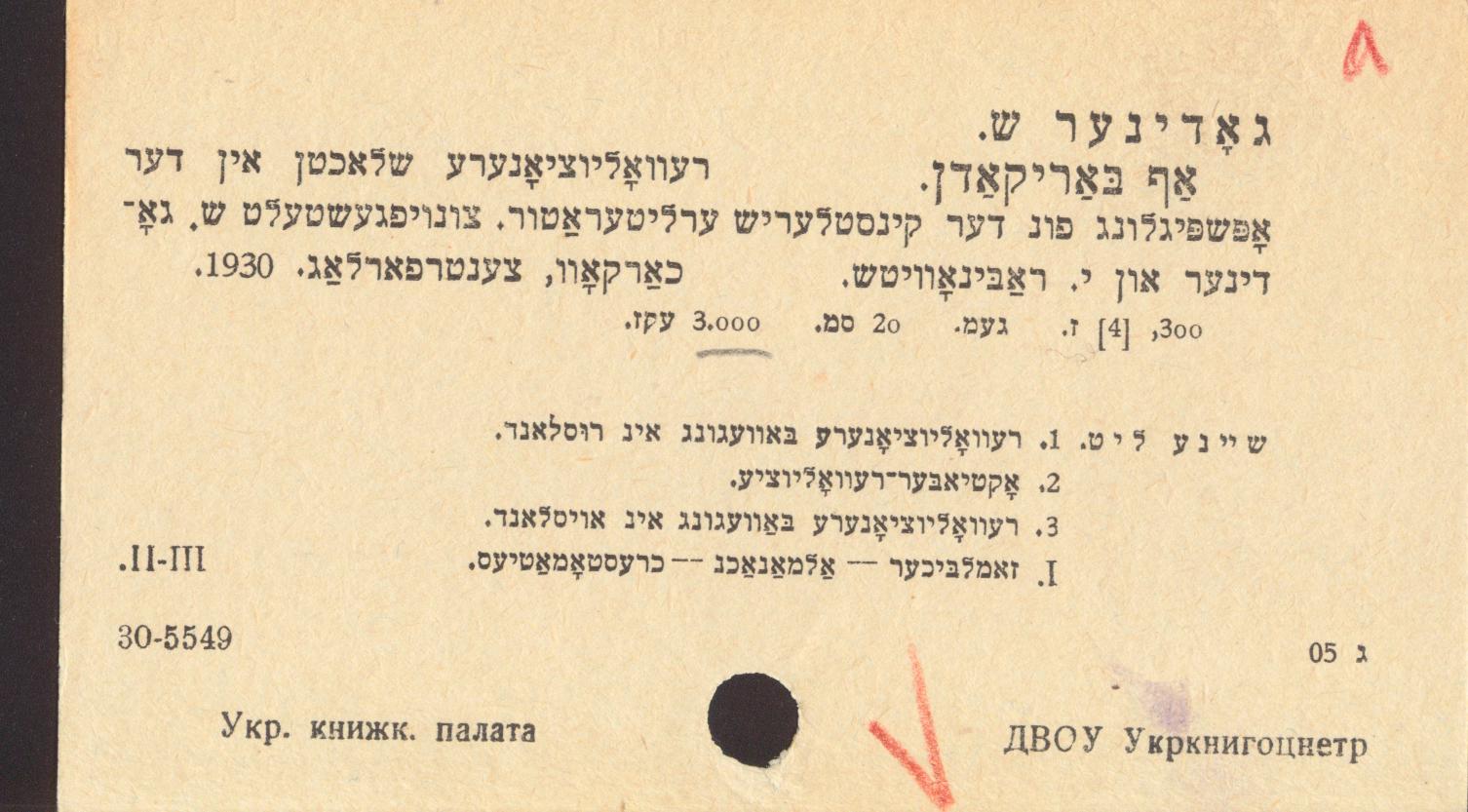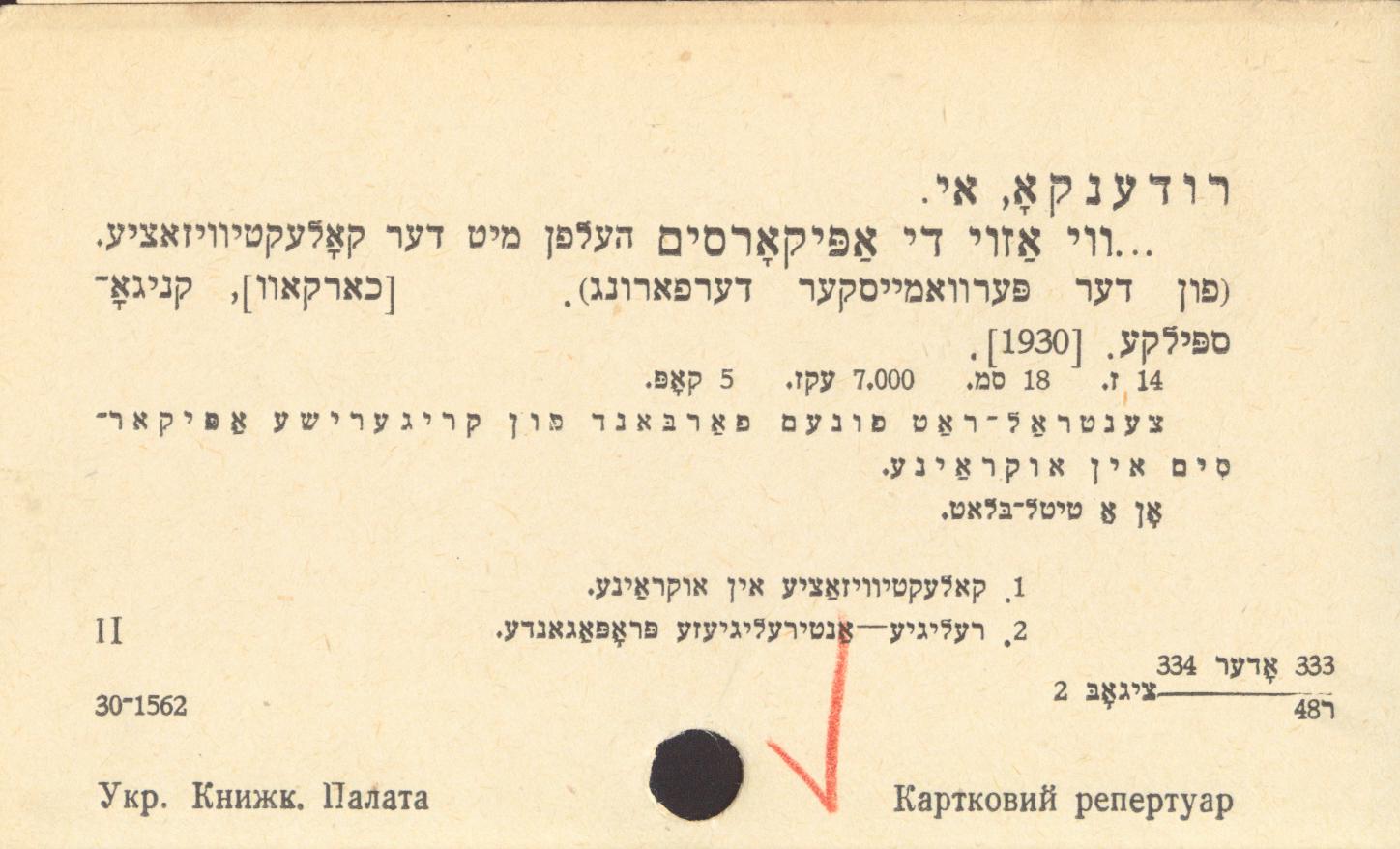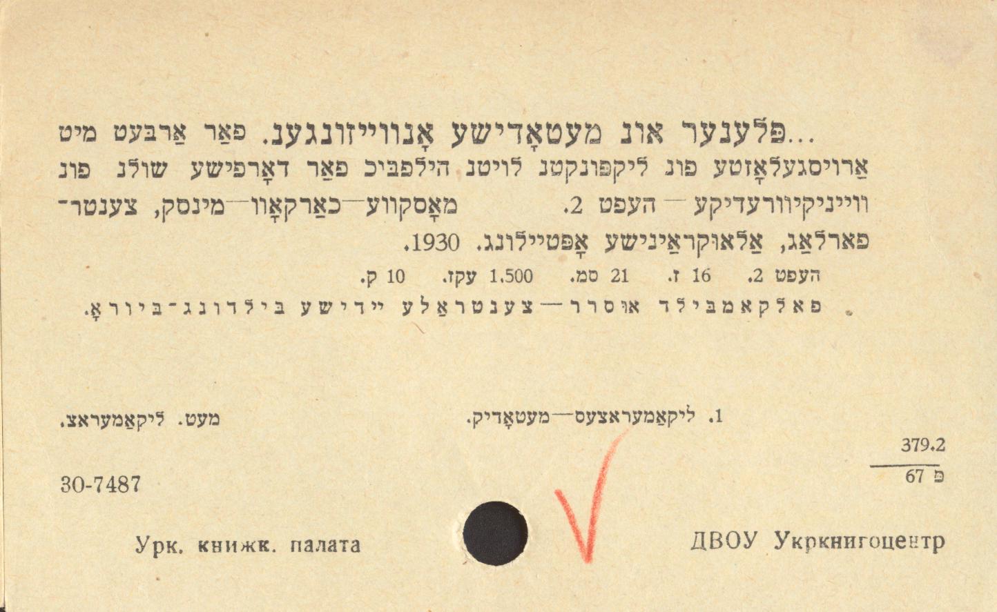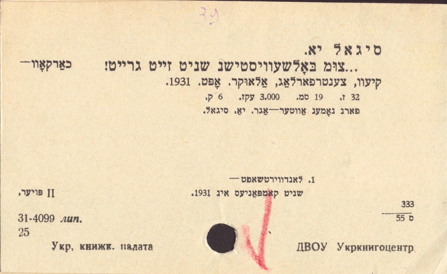 Імідж-каталог книжкових видань 1930 — 1931 рр. мовою ідиш