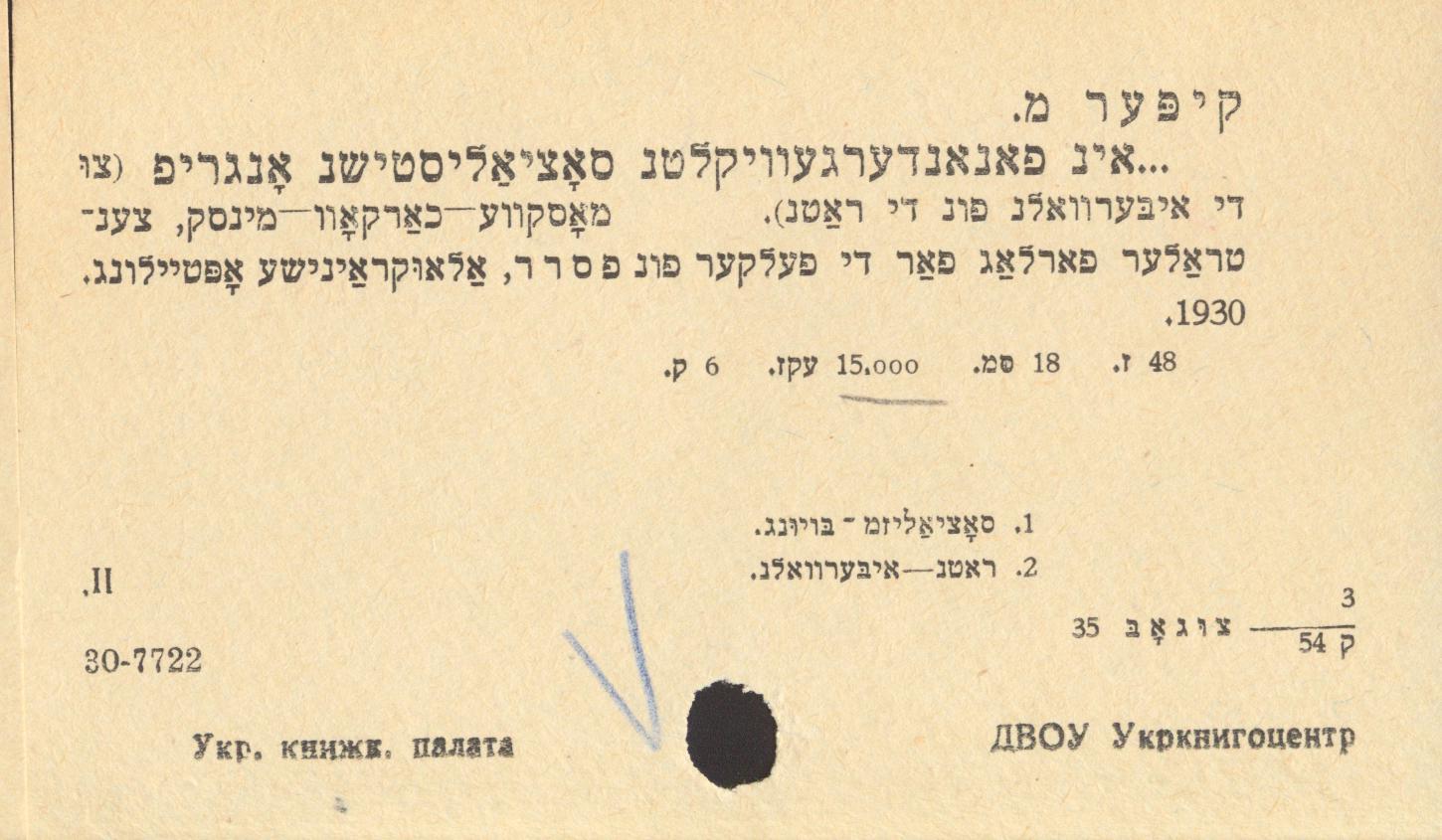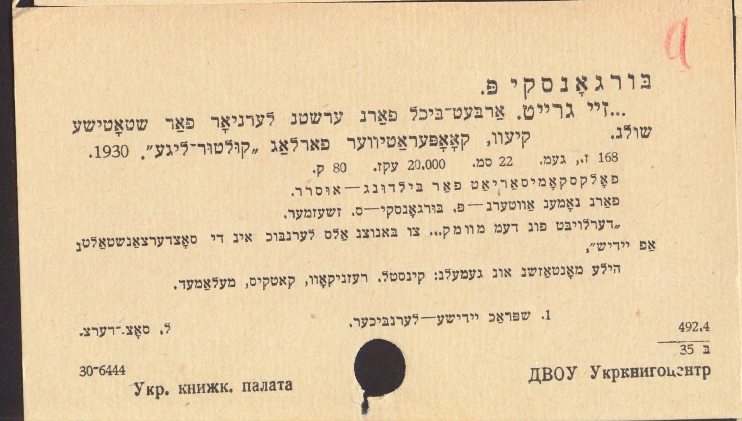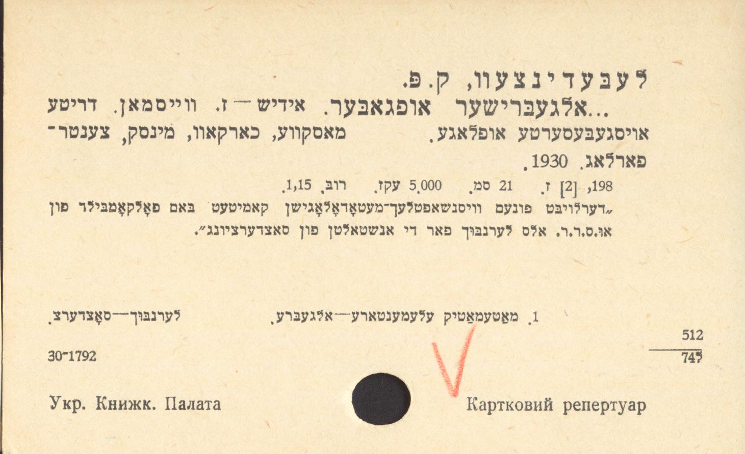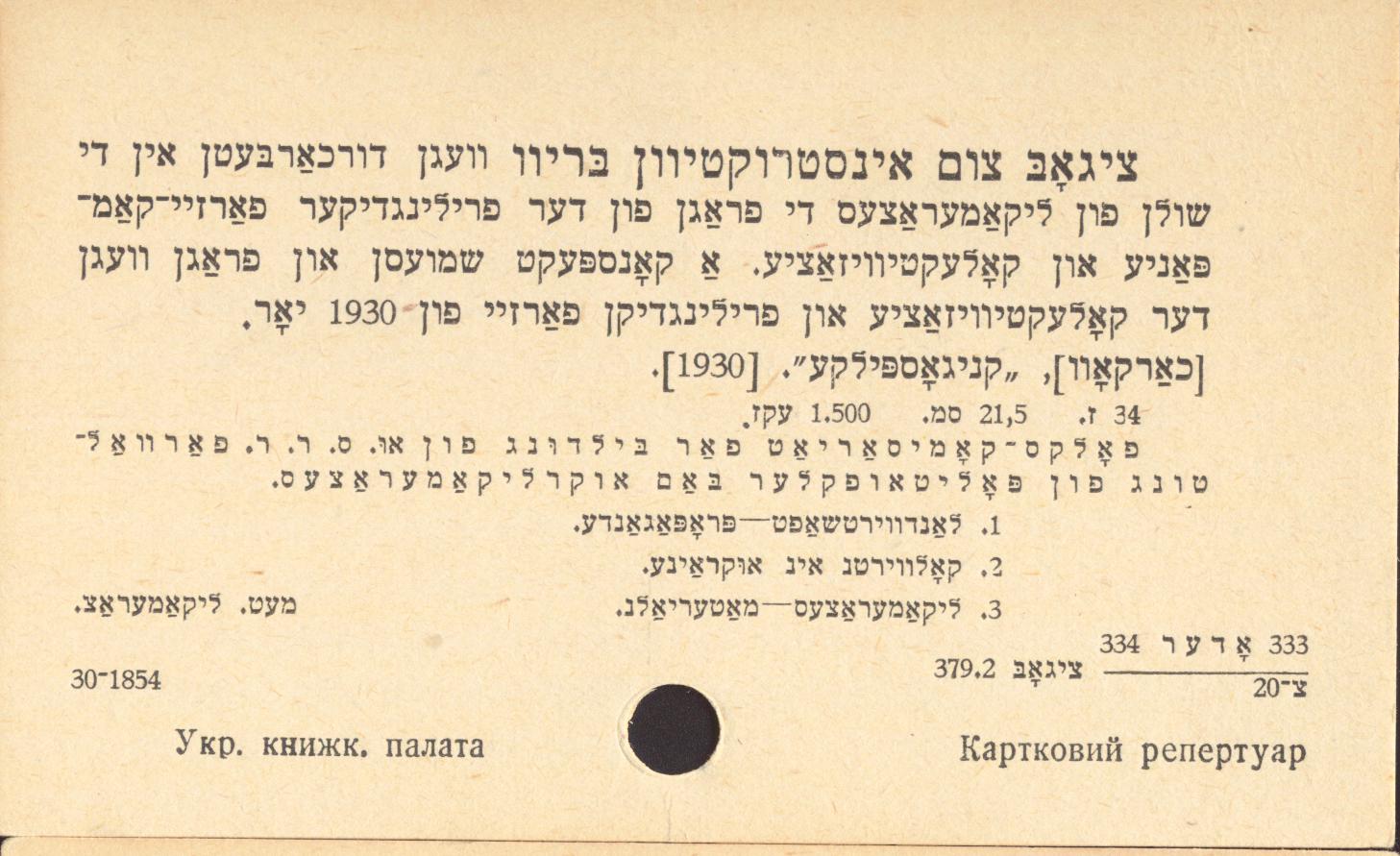 Імідж-каталог книжкових видань 1930 — 1931 рр. мовою ідиш