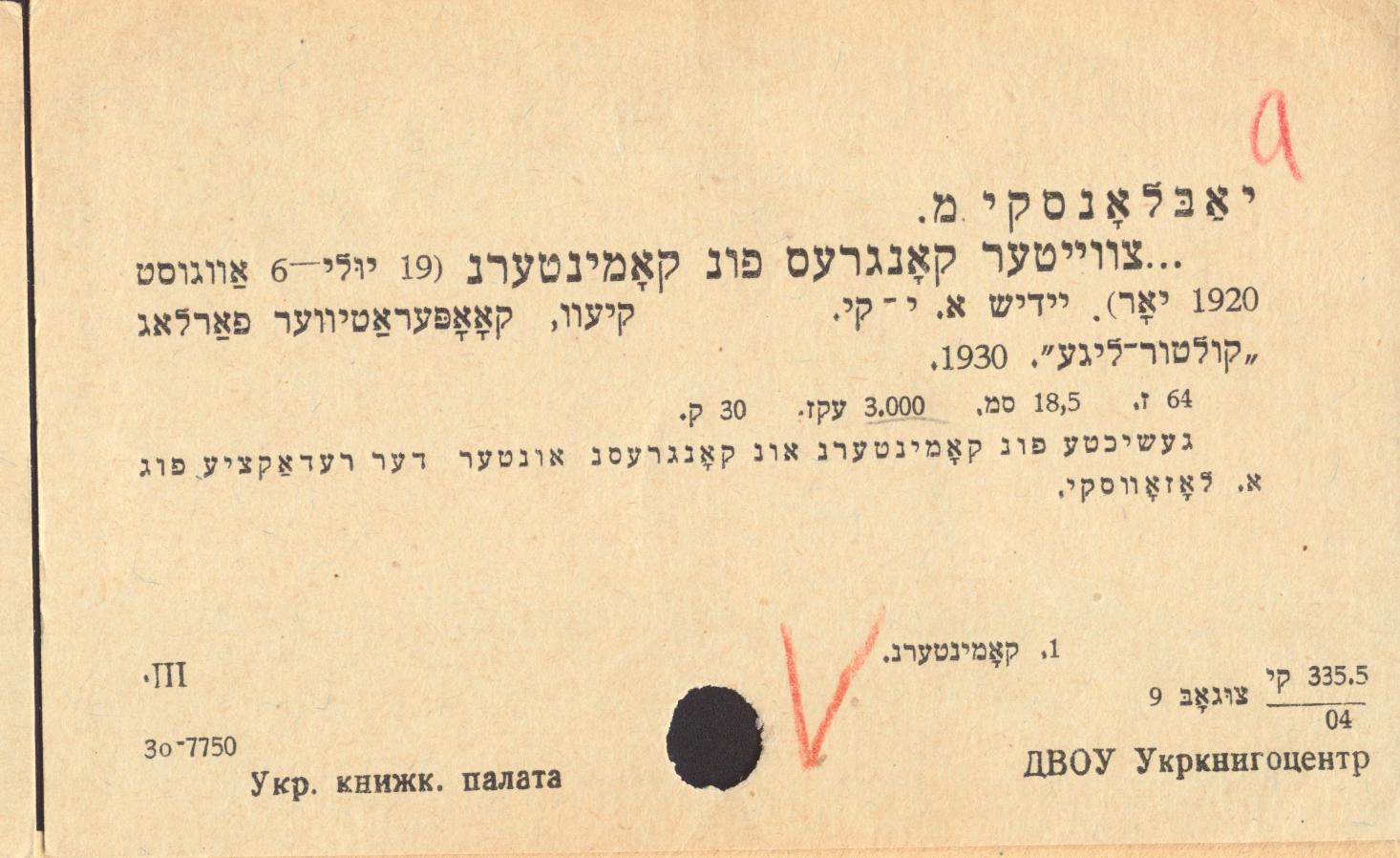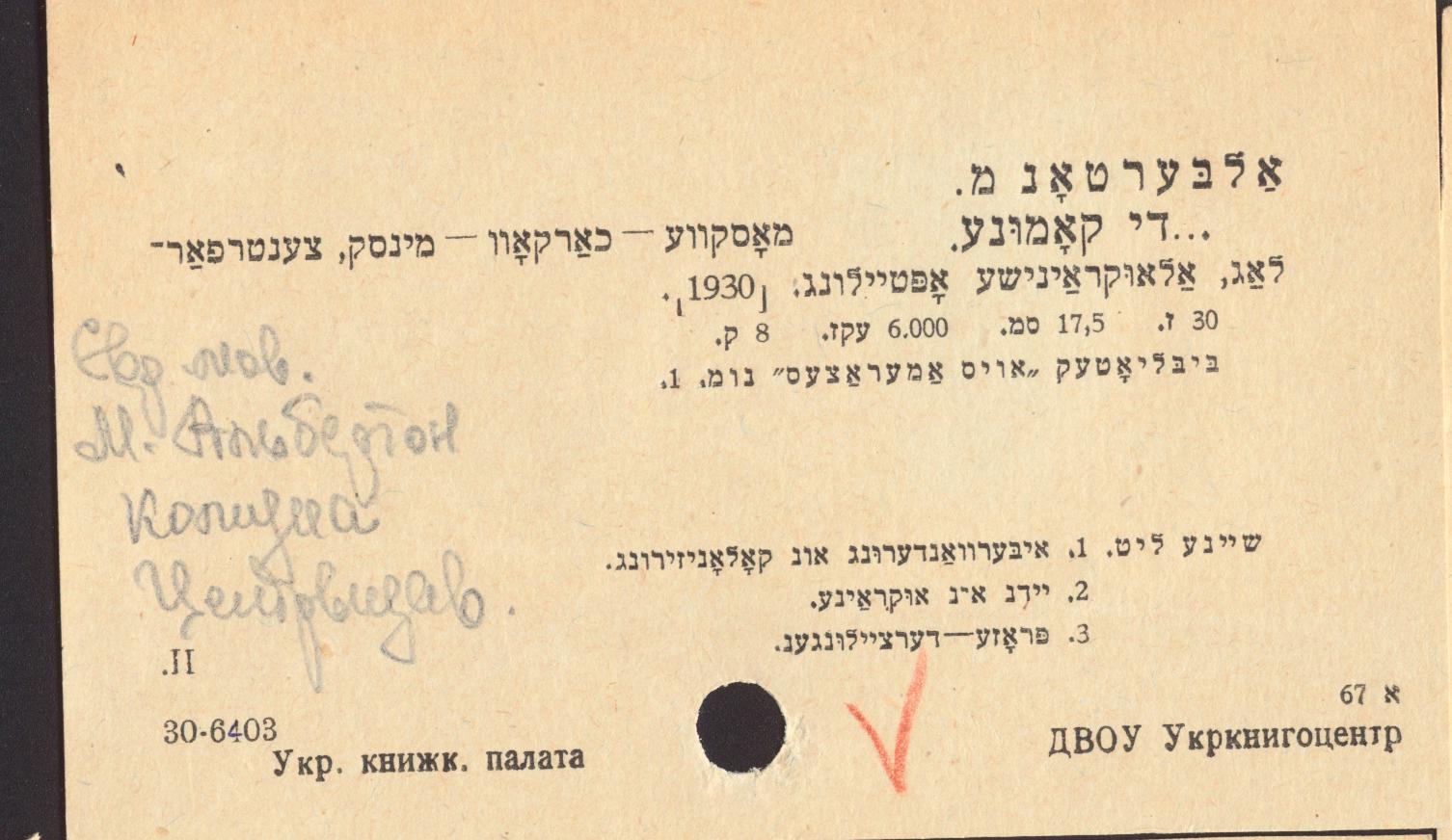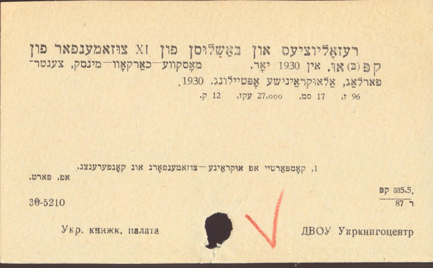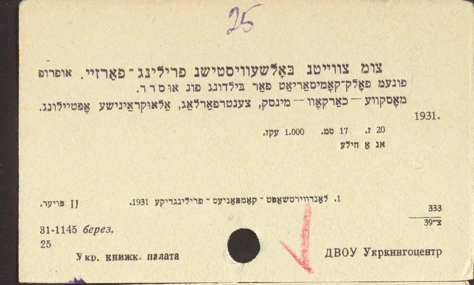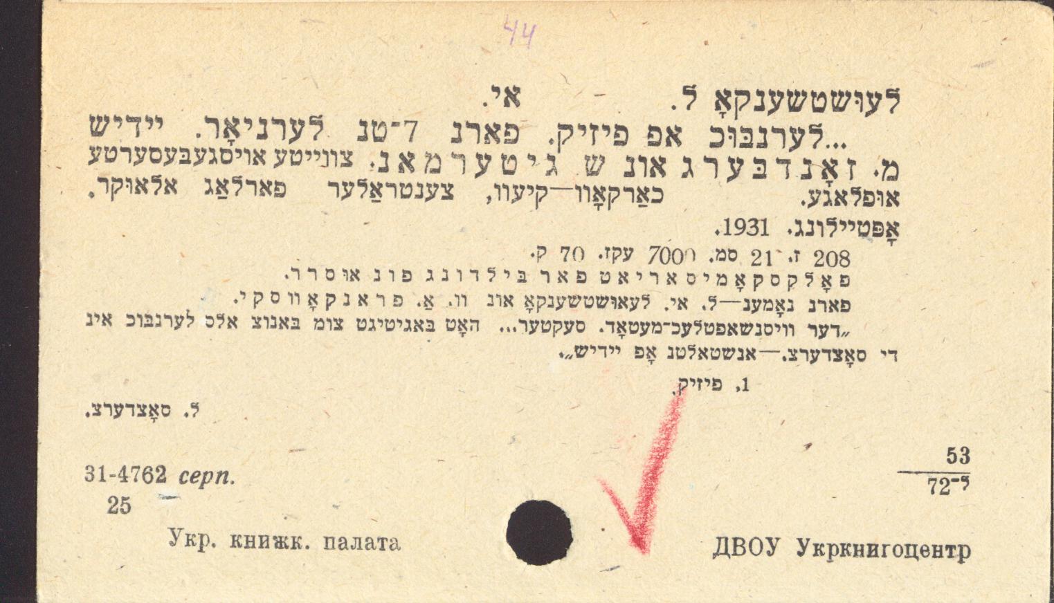 Імідж-каталог книжкових видань 1930 — 1931 рр. мовою ідиш
