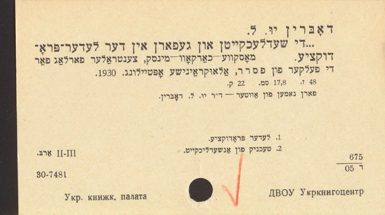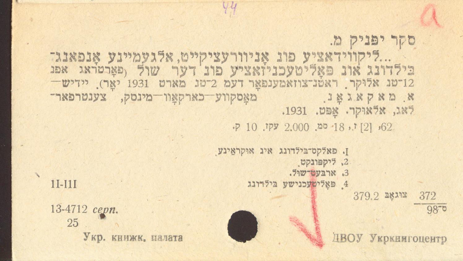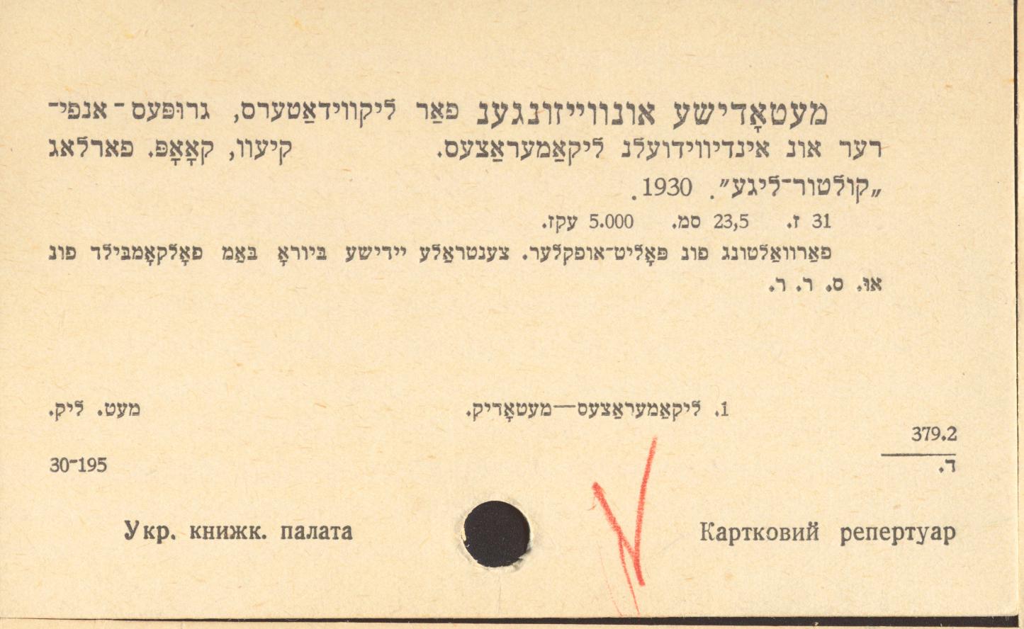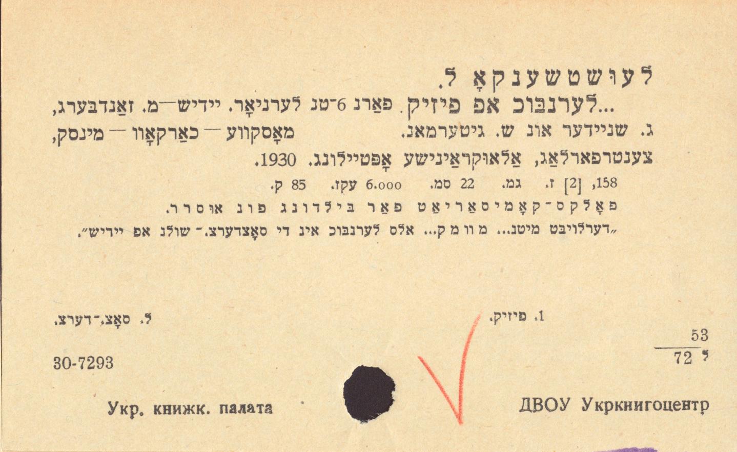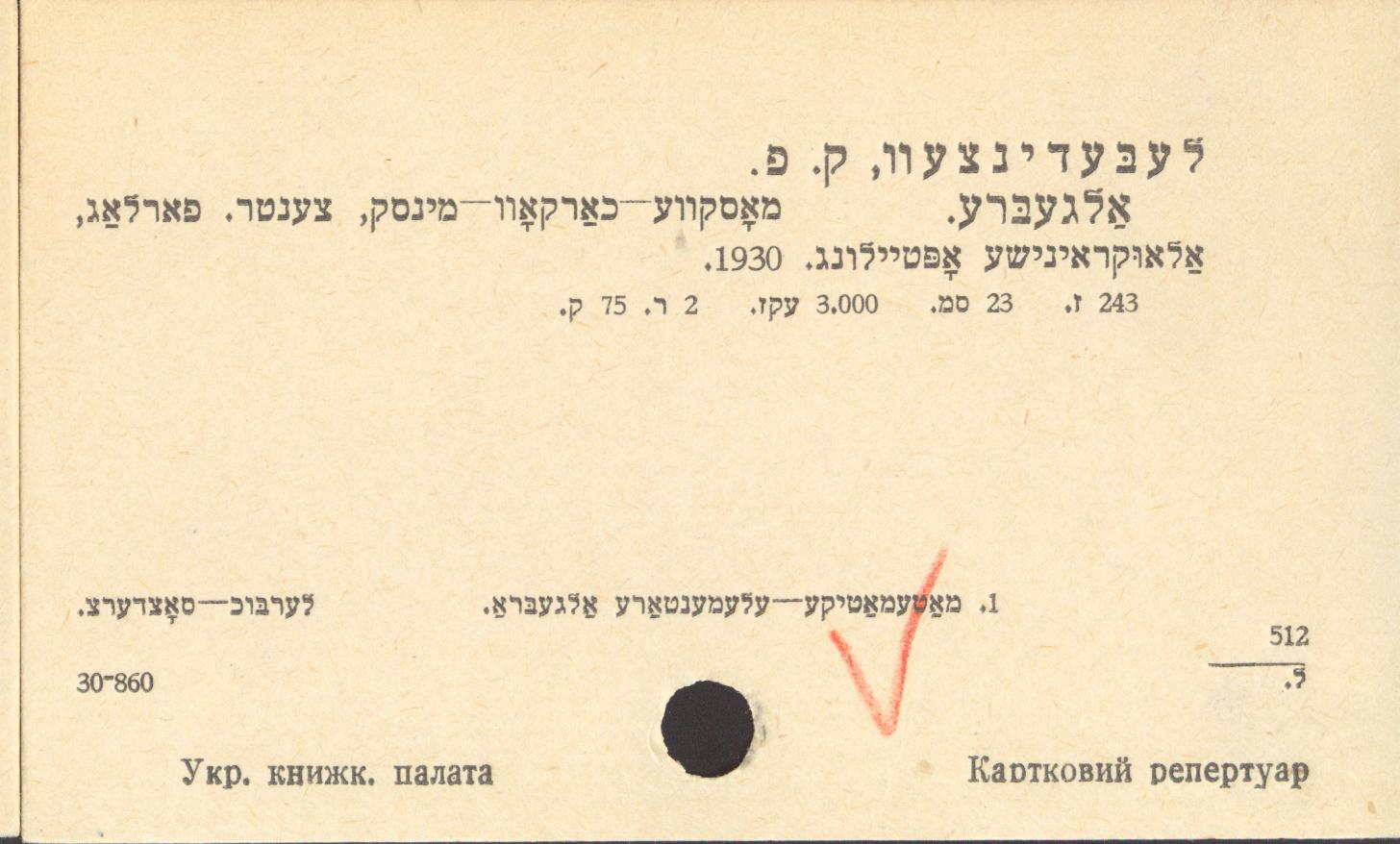 Імідж-каталог книжкових видань 1930 — 1931 рр. мовою ідиш