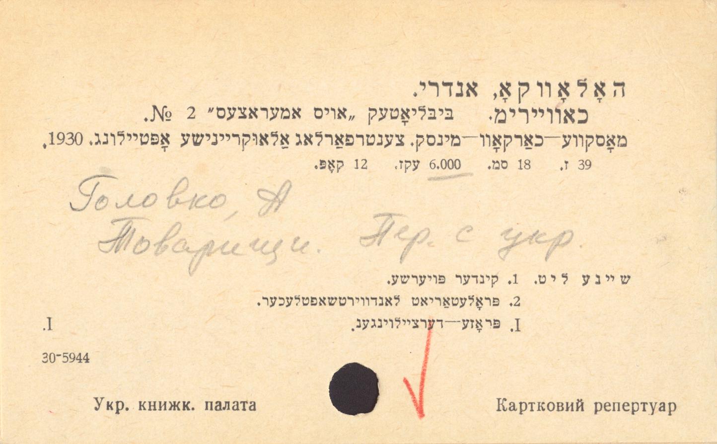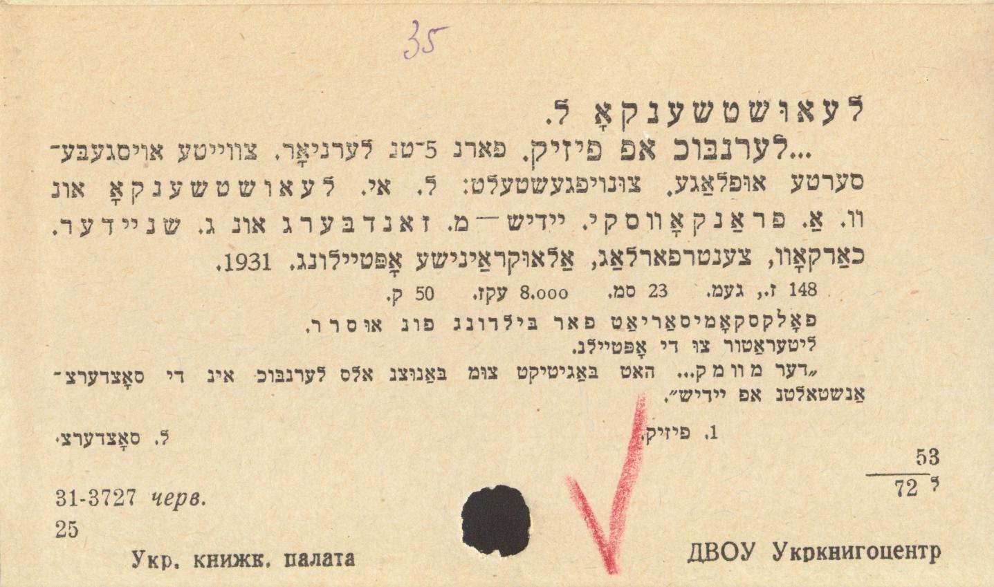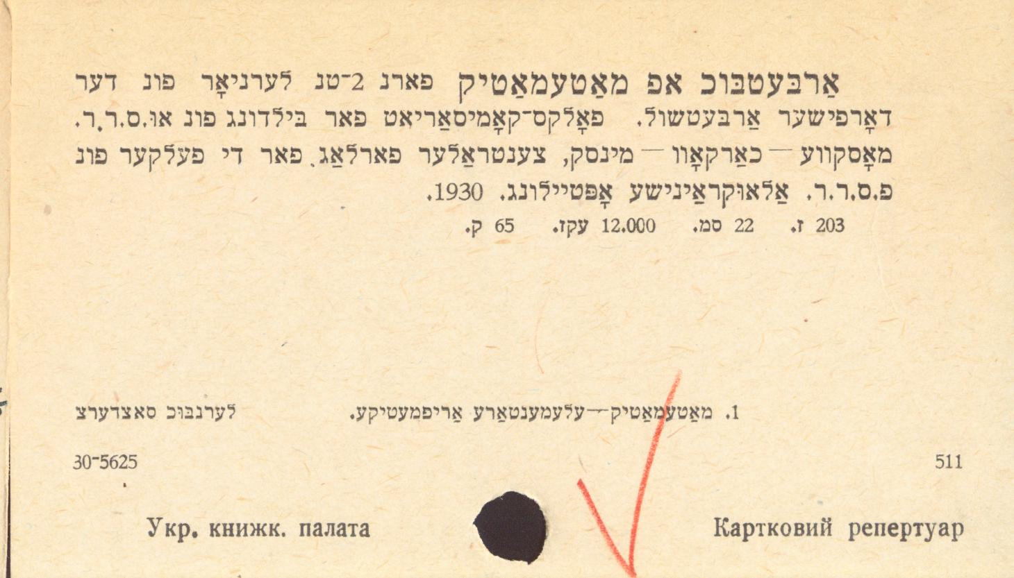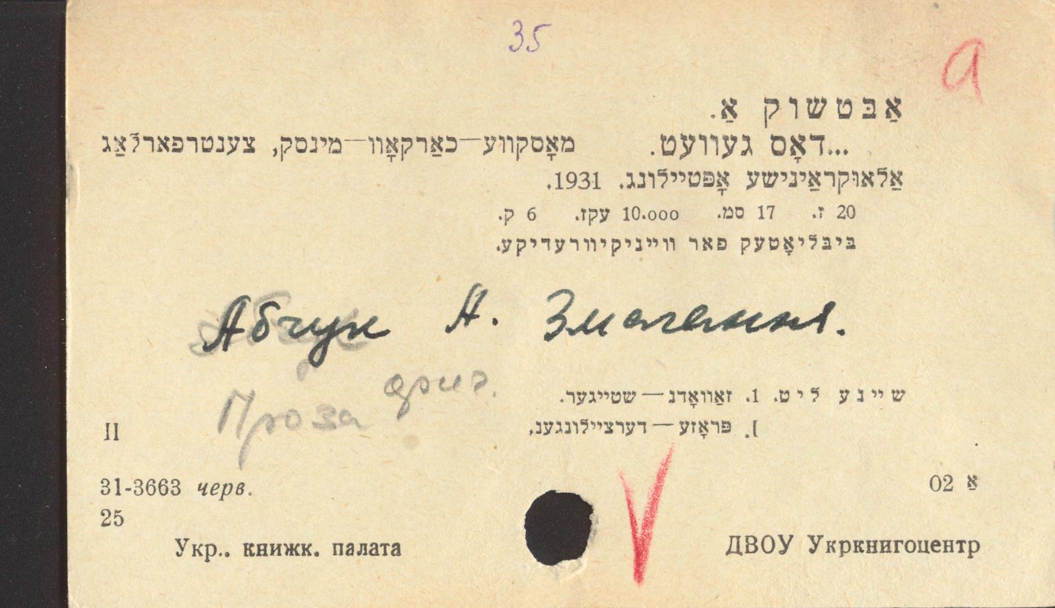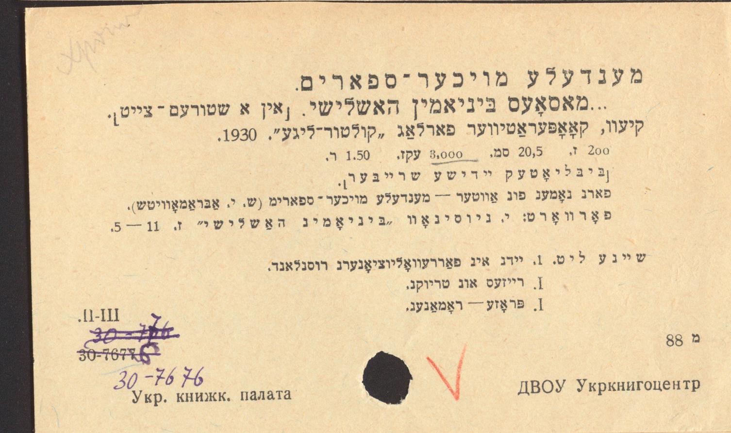 Імідж-каталог книжкових видань 1930 — 1931 рр. мовою ідиш